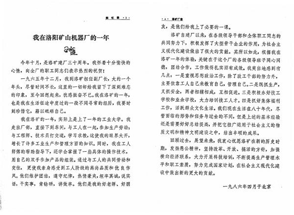 習(xí)仲勛同志為洛礦30周年廠慶撰寫回憶文章